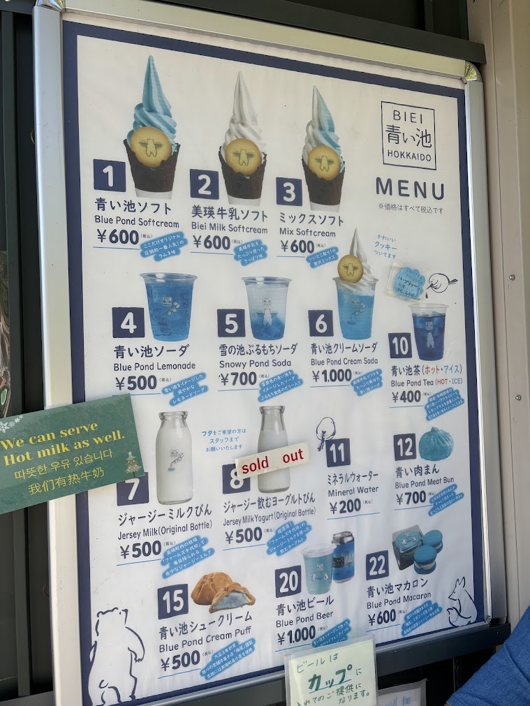 売店には、青いソフトクリームやソーダなどが売っていました。お土産に青いキャンディを購入。