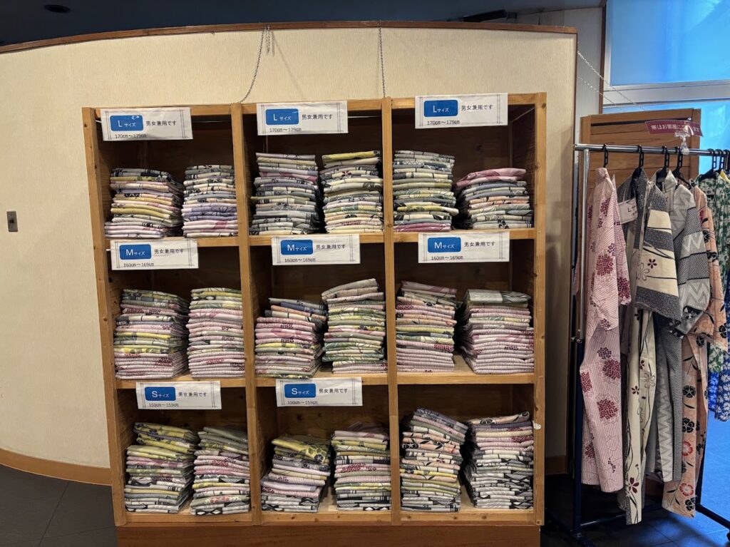 浴衣はこちらで好きなものを選んで持っていくようです。可愛い柄がたくさん!