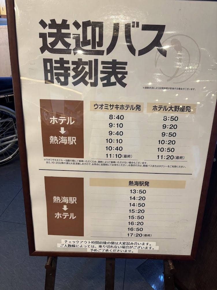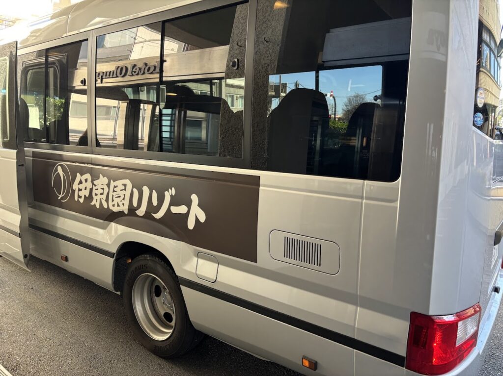 チェックアウトの手続きを終えると、ちょうど送迎バスが出発するようでした。