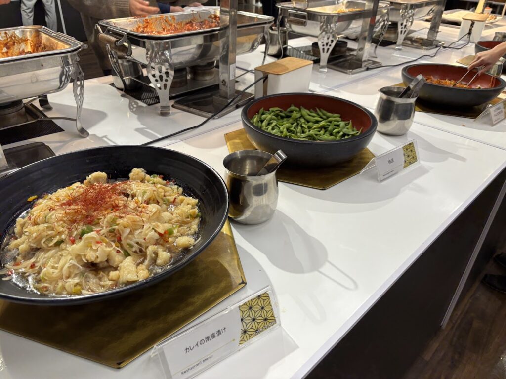 広い会場に、いろいろなお料理が並べられています!