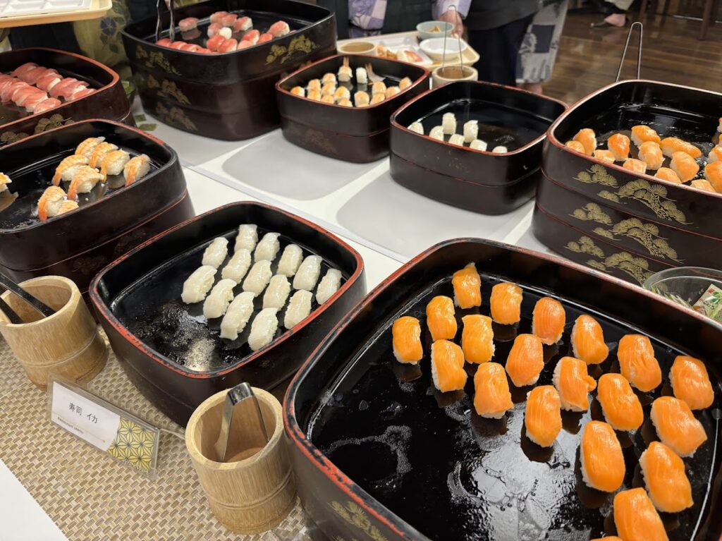 お寿司やお刺身、てんぷら、餃子・・