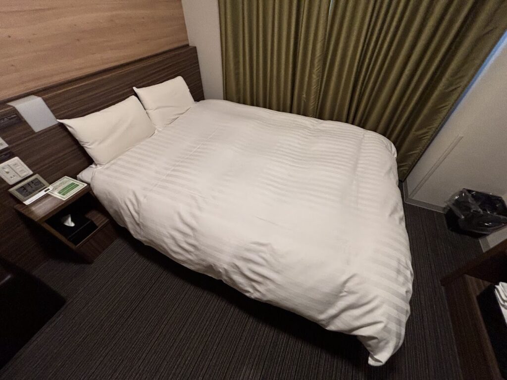 ダブルベッド。寝心地は良かったです!