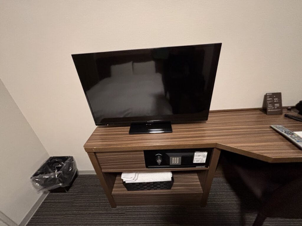 テレビと金庫。下の棚にはタオルセットがありました。