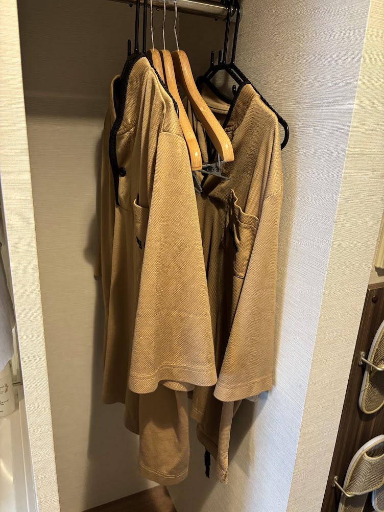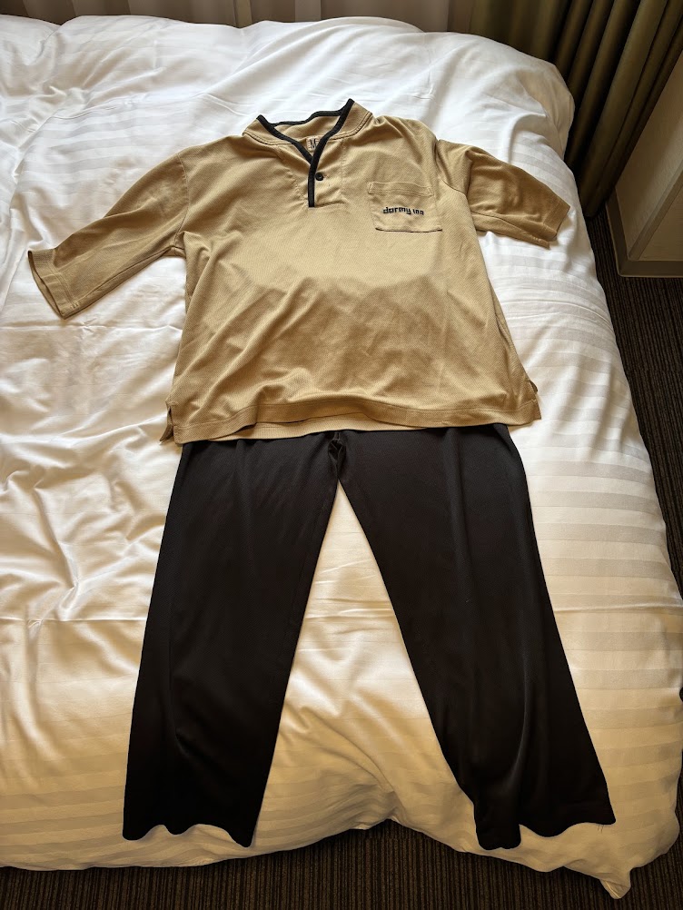 パジャマは上下セパレートタイプ。薄めですが、館内が暖かいのでちょうど良かったです。