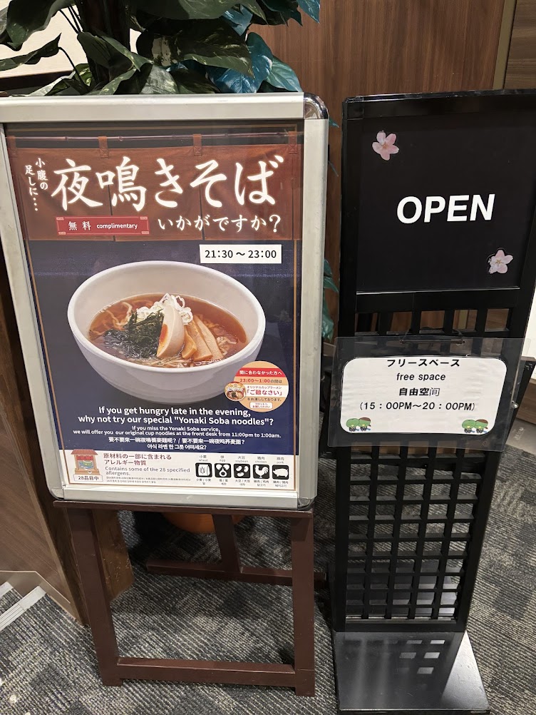 2階の朝食会場では21:30~23:00まで夜鳴きそばが無料でいただけます!
