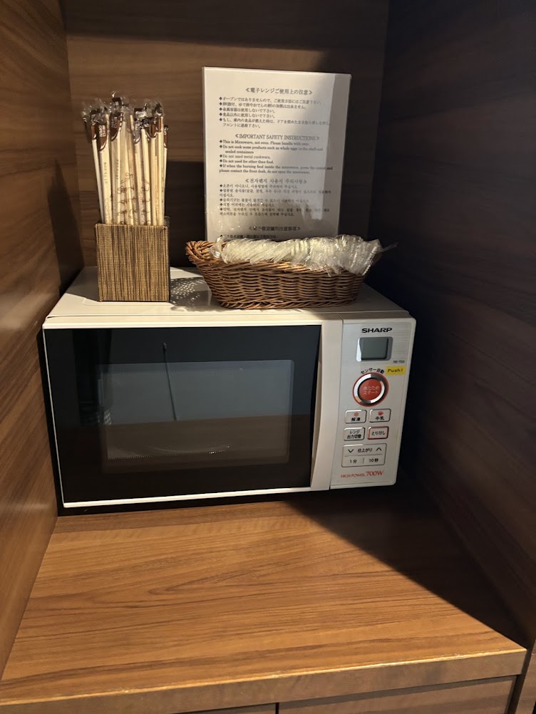 電子レンジもあり、お箸やスプーンも用意されているのがありがたい!