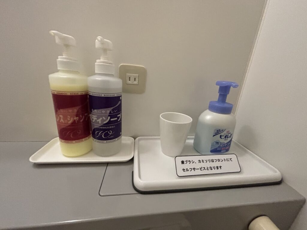 リンスインシャンプーとボディソープ、ハンドソープ。