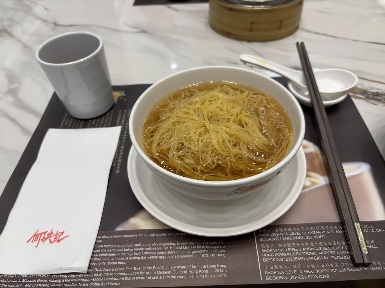 しばらく時間をつぶし、マックが飽きてきたのでそろそろ移動。空港内を散策します。到着ロビーに降り、飲茶のお店を発見!「何洪記粥麺専家」です。席が空いていたのですぐに通してもらえました。