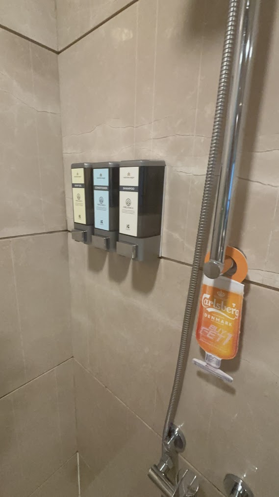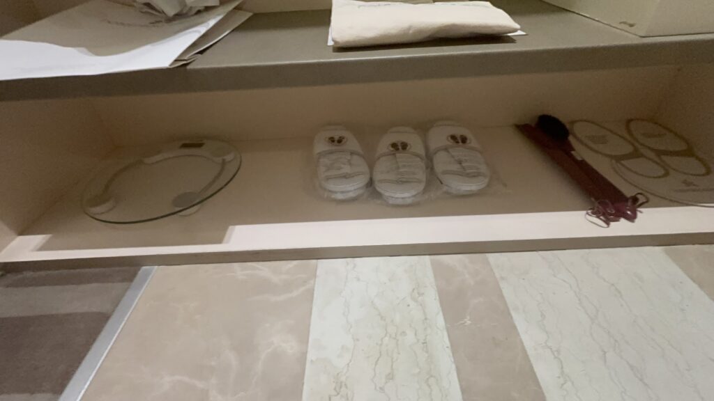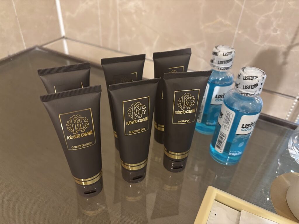 シャンプー・リンス・ボディソープ・バスソルト・カミソリ・コットン・ボディクリーム・シャワーキャップ・ボディスポンジ、なんとリステリンまでありました。うがい用のお水もあります。