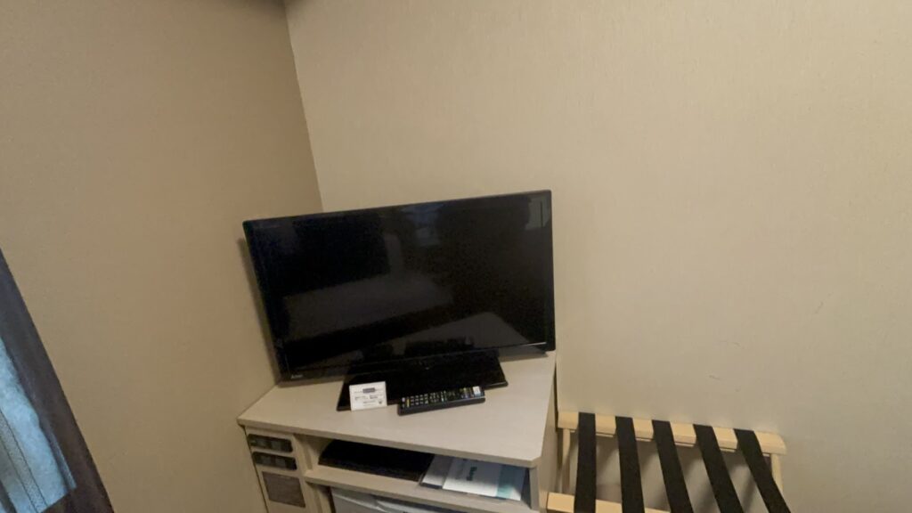 テレビの下には冷蔵庫があります。ちょっとした物置もうれしい。