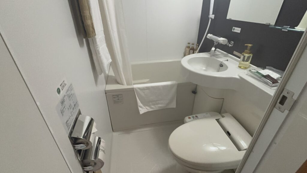 お風呂はユニットバスタイプ。大浴場があるので、お部屋のお風呂は使いませんでした。