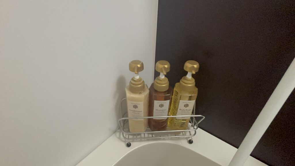 お部屋のお風呂にも、シャンプー、リンス、ボディソープがあります。