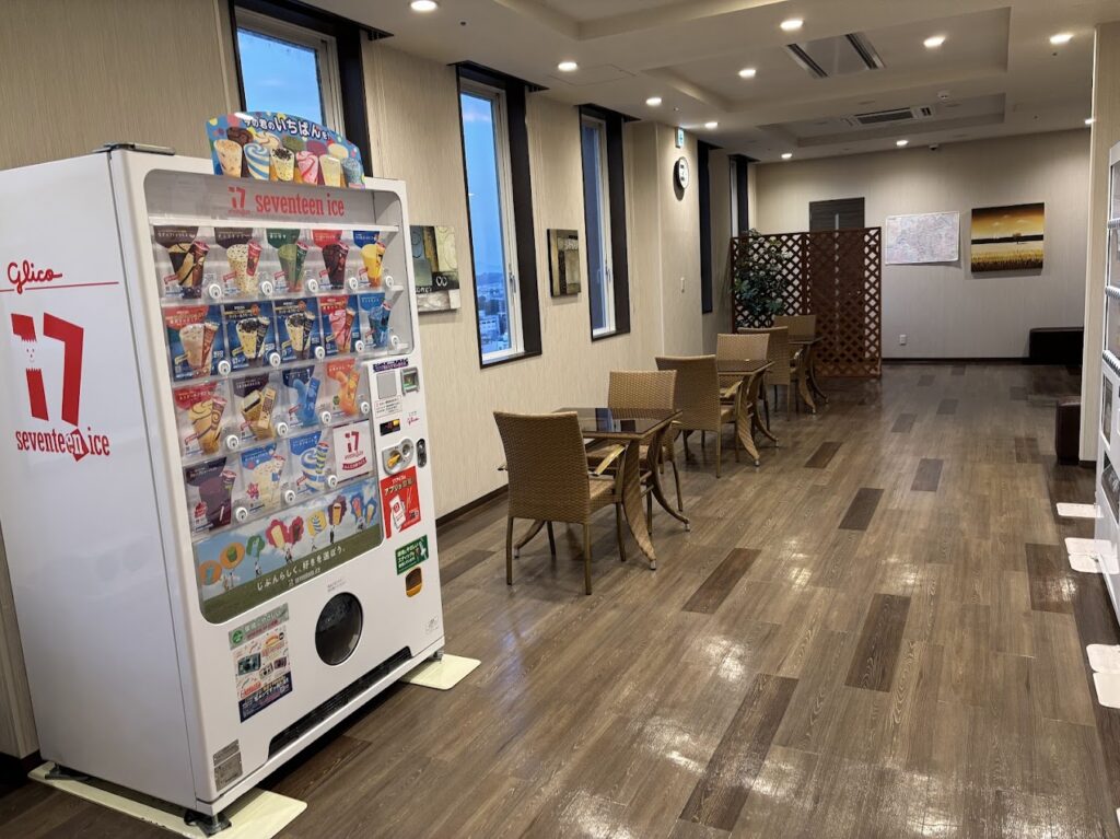 自動販売機の横には電子レンジもありました。セブンティーンアイスの自販機もあります。