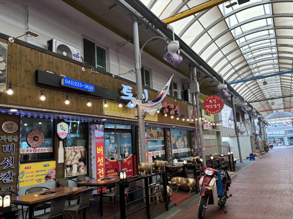 清州では、「サムギョプサル」が有名で、サムギョプサル通りなるものがあり、韓国グルメも楽しめます。