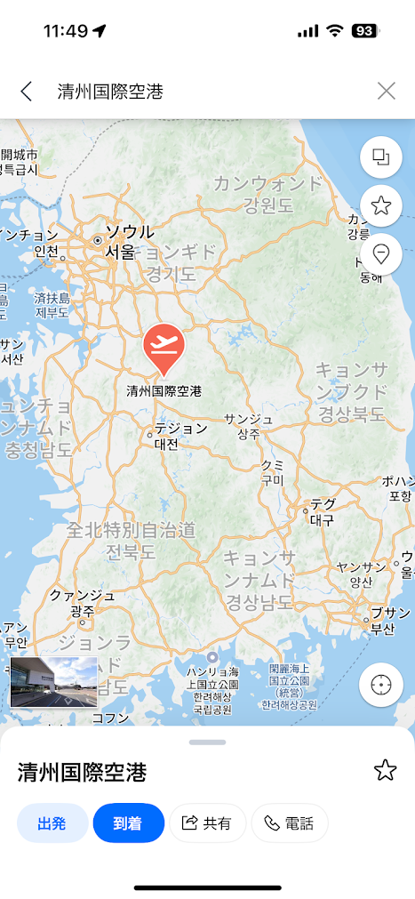 清州空港があり、日本各地へ直行便が出ています。清州空港から、ソウルまで高速バスが出ており、1時間半ほどでソウルまで行けるとのこと。