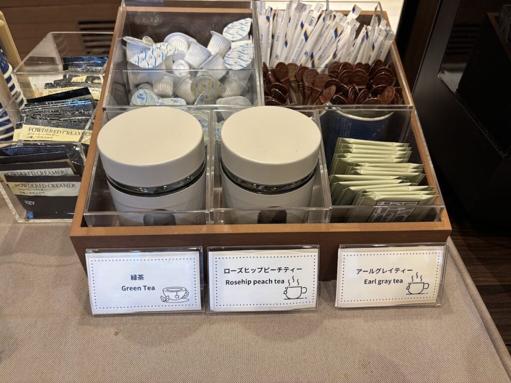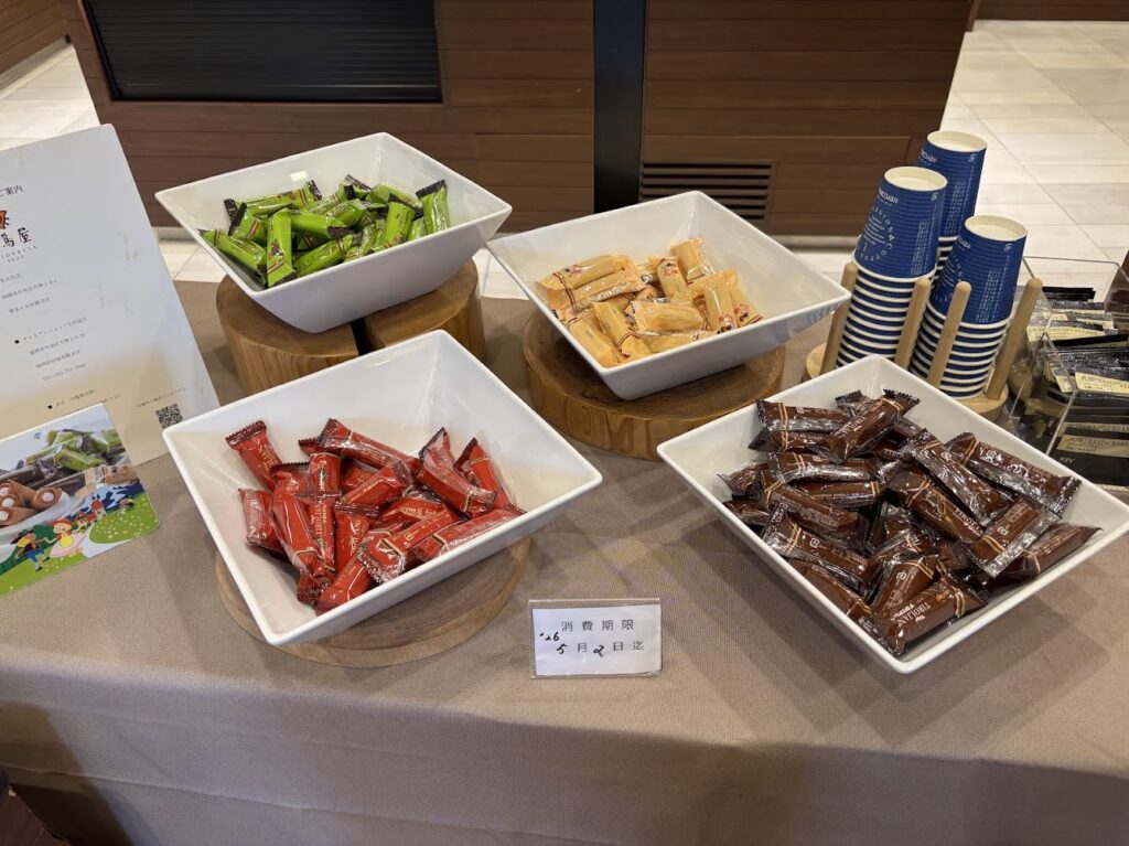 コーヒーや紅茶、ジュース、お菓子がいただけます。