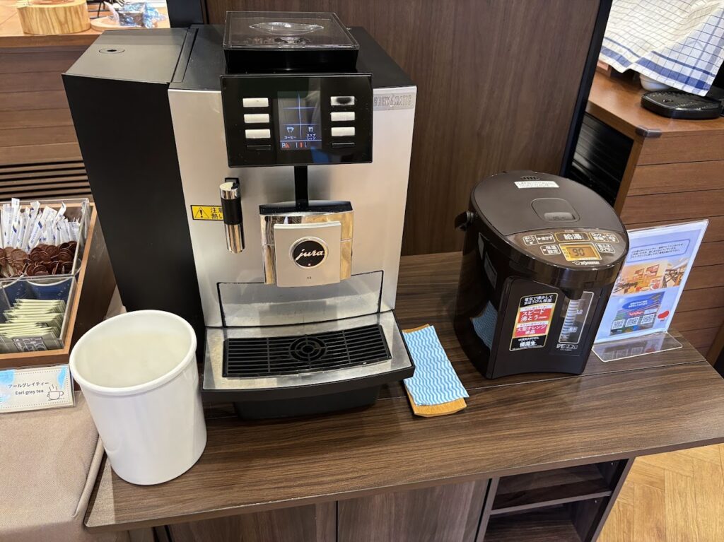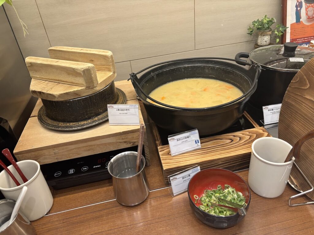 ご飯はロボット式でボタンを押すと出てくるタイプでした。おかゆに味噌汁、スープ