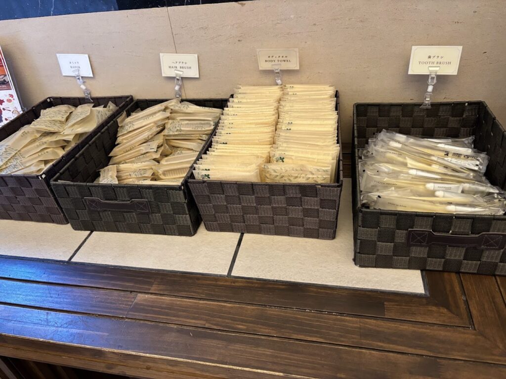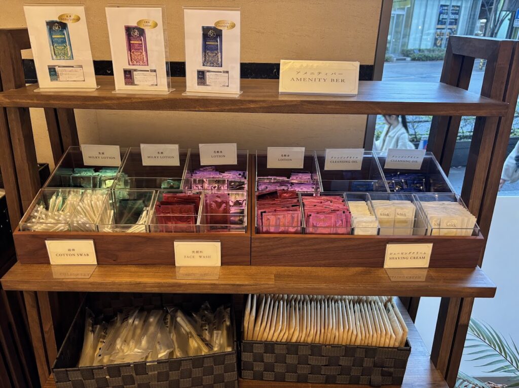 アメニティは、フロント近くのアメニティバーから必要なものを持っていきます。