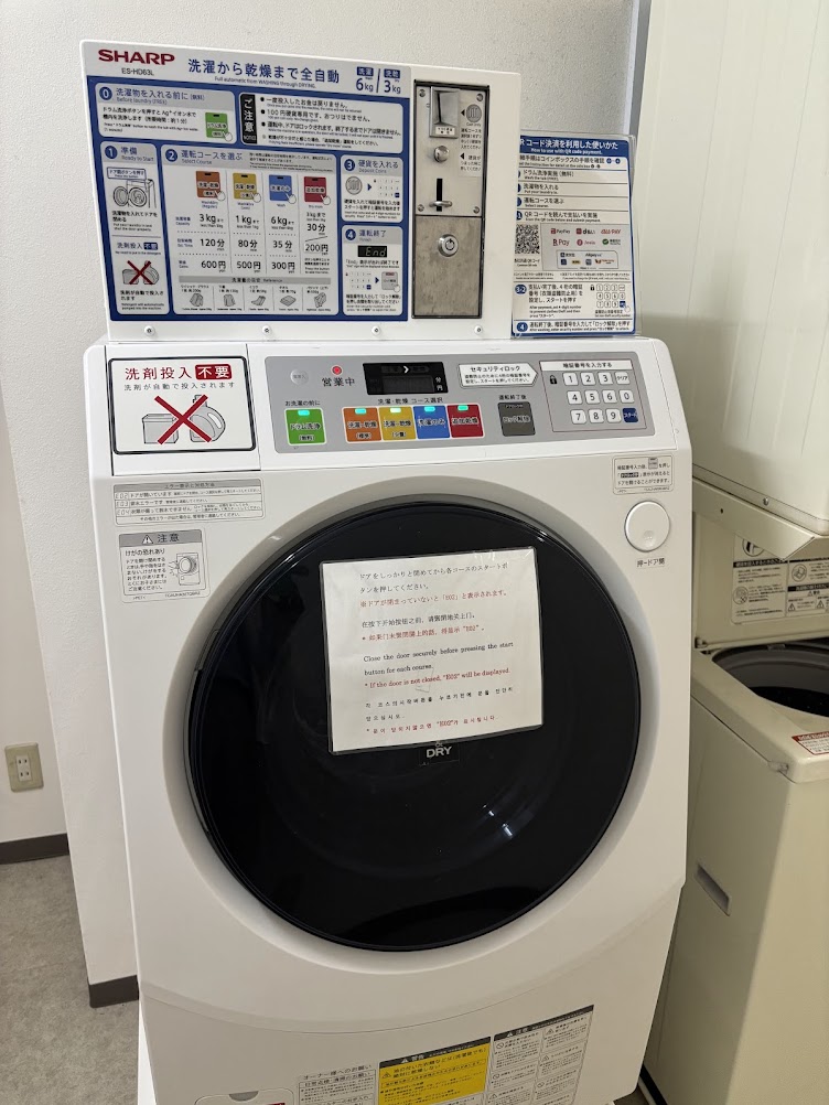 ドラム式が1台と縦型、乾燥機が2台ずつ設置されていました。