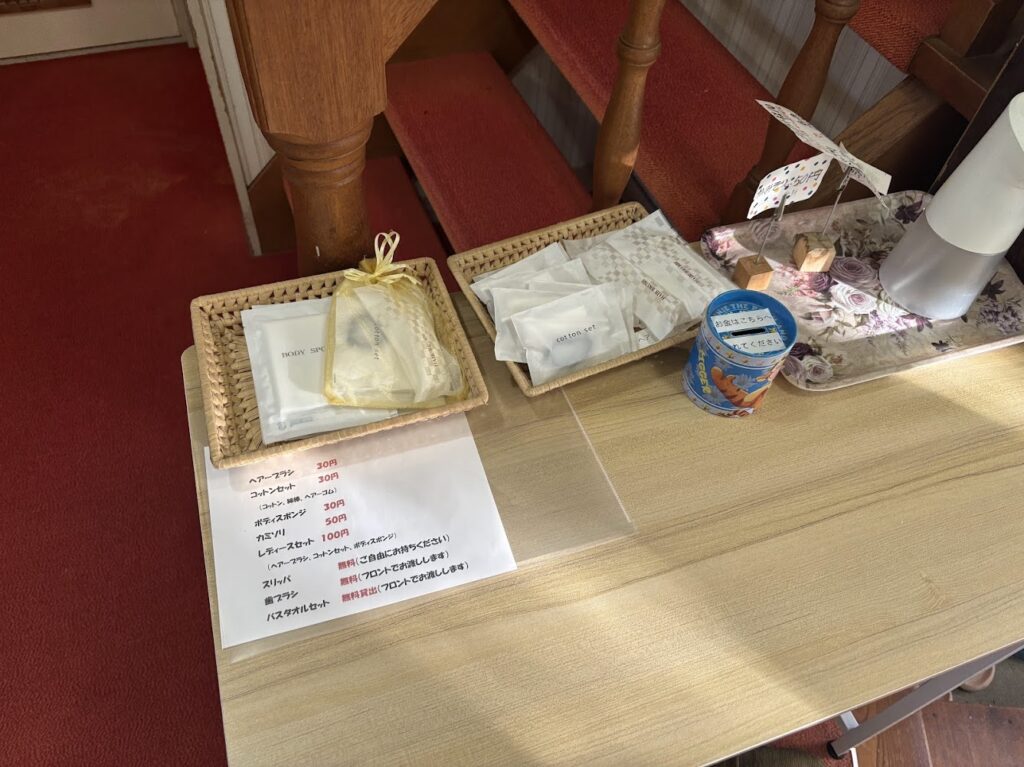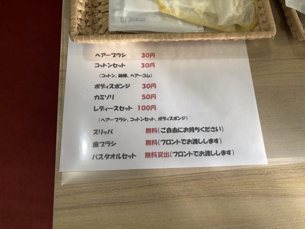 歯ブラシ、スリッパは無料。バスタオルは無料で貸し出しがあります。